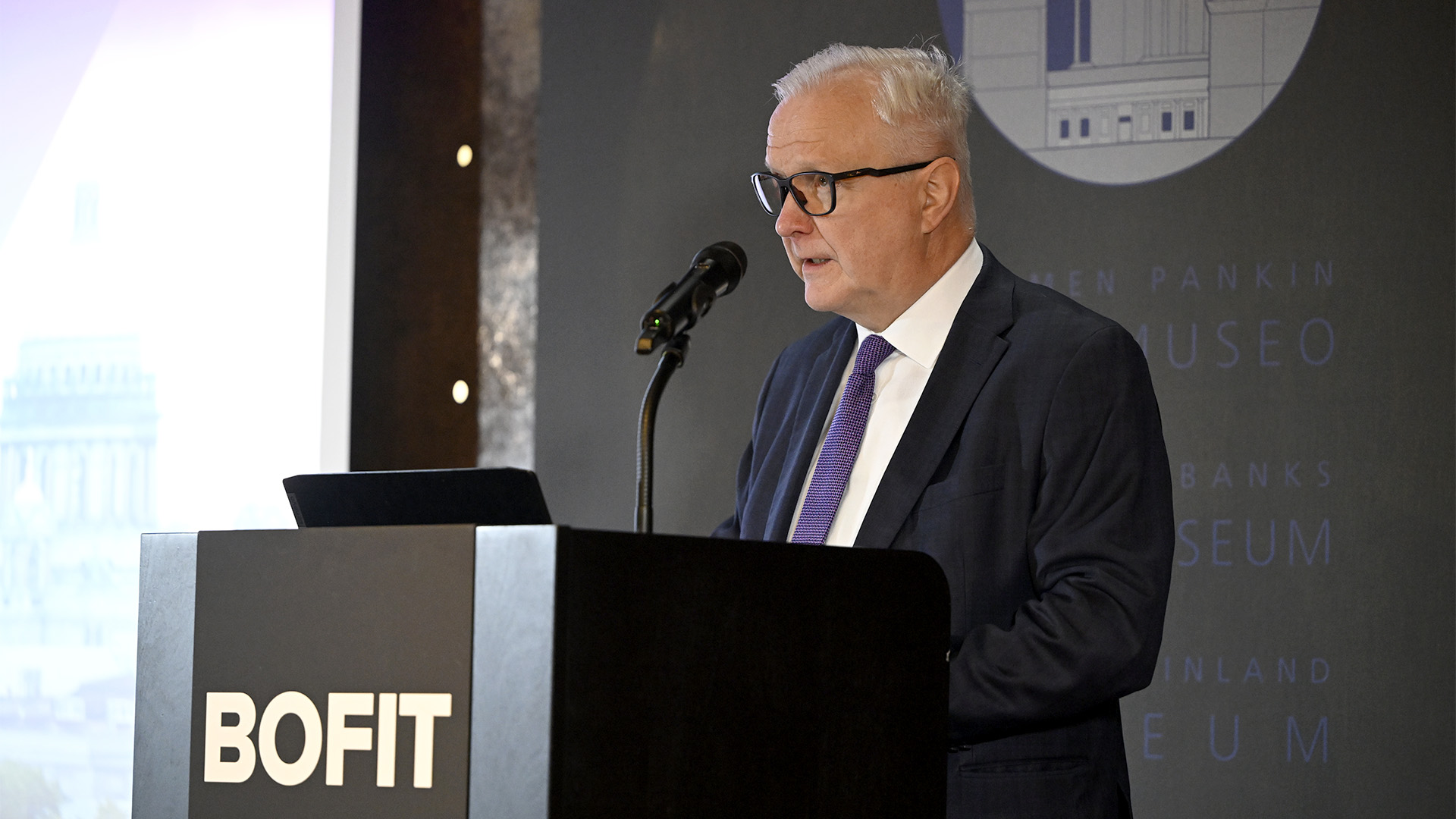 Pääjohtaja Olli Rehn avasi Suomen Pankin nousevien talouksien tutkimuslaitos BOFITin Venäjä-tietoiskun maanantaina 30.3.2026.